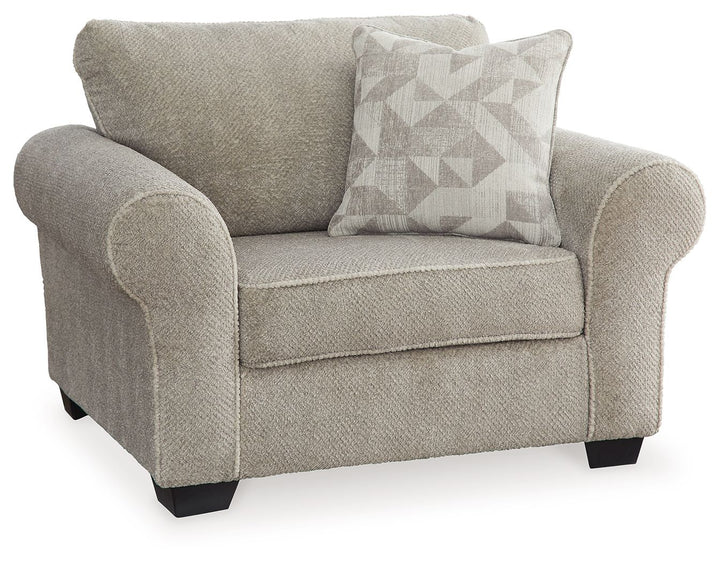 Everyday form, superb function. Framed with roll arms for a dash of flair, this oversized chair sets its sights on trendy transitional design. The neutral hue meshes with multiple color palettes, providing chic seating wherever you need it most. Soft-to-the-touch fabric aids you in superior relaxation. Now that's universal style, made simple.